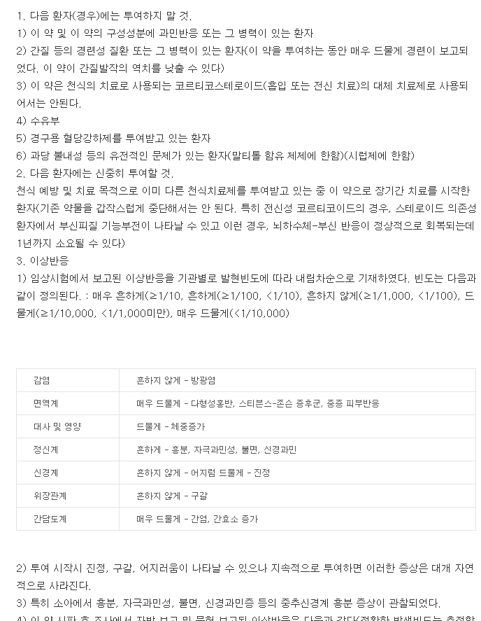 아래의 포스팅 내용은 약학정보 전문기관에 공시되어 있는 의약품 전문자료를 바탕으로 객관적인 정보만을 기술하는 점을 참고하세요.
