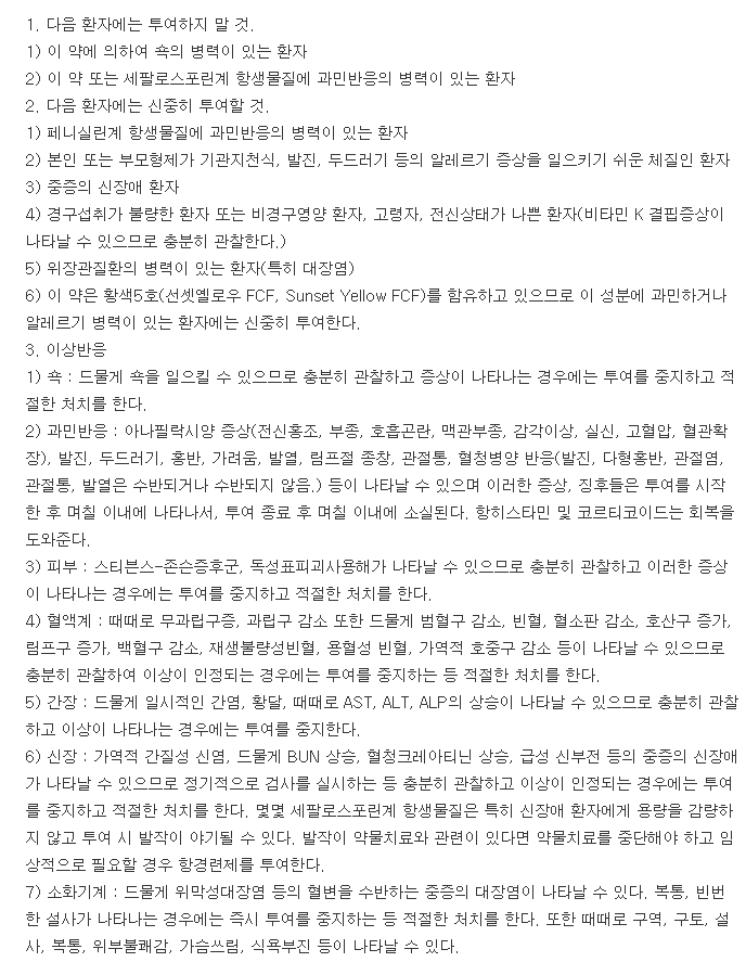 5. 대우세파클러캡슐250mg 성분과 성분별 약효