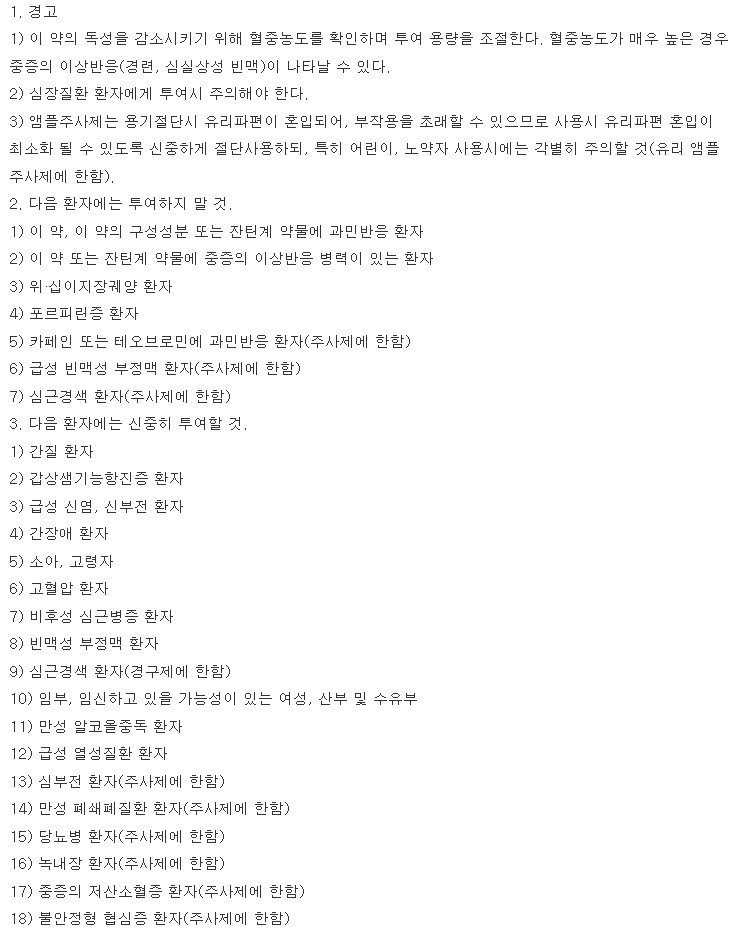 대원아미노필린주사액 효능, 복용법, 주의사항