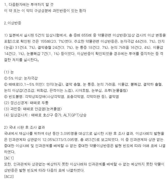따라서 약학정보원에 공시되어 있는 하단의 약품 주의사항을 반드시 꼼꼼히 읽어보시고 부작용이나 이상반응, 소아나 고령자, 임부나 수유부에 해당하는 경우 주의를 기울여야 합니다.
