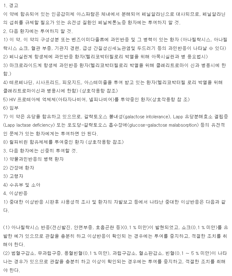 따라서, 약학정보원에 공시된 아래의 의약품 주의사항을 필히 세밀히 읽어보시고 부작용이나 이상반응 여부, 고령자나 소아, 임산부나 수유부에 해당하는 경우 주의를 기울이셔야 합니다.