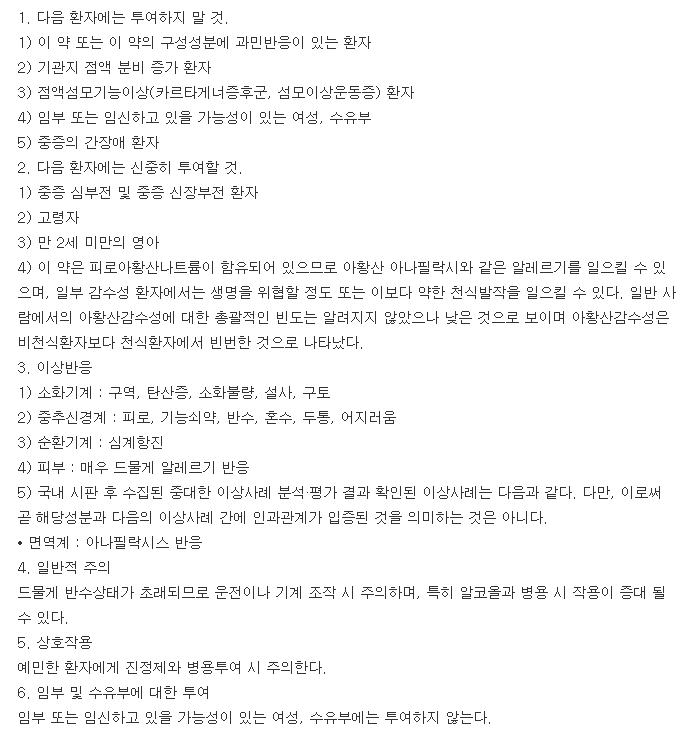 따라서, 약학정보원에 공시되어 있는 밑의 약품 주의사항을 필히 자세히 정독하고 부작용이나 이상반응, 소아나 고령자, 임신하거나 수유하는 경우에 관한 주의를 기울이셔야 합니다.