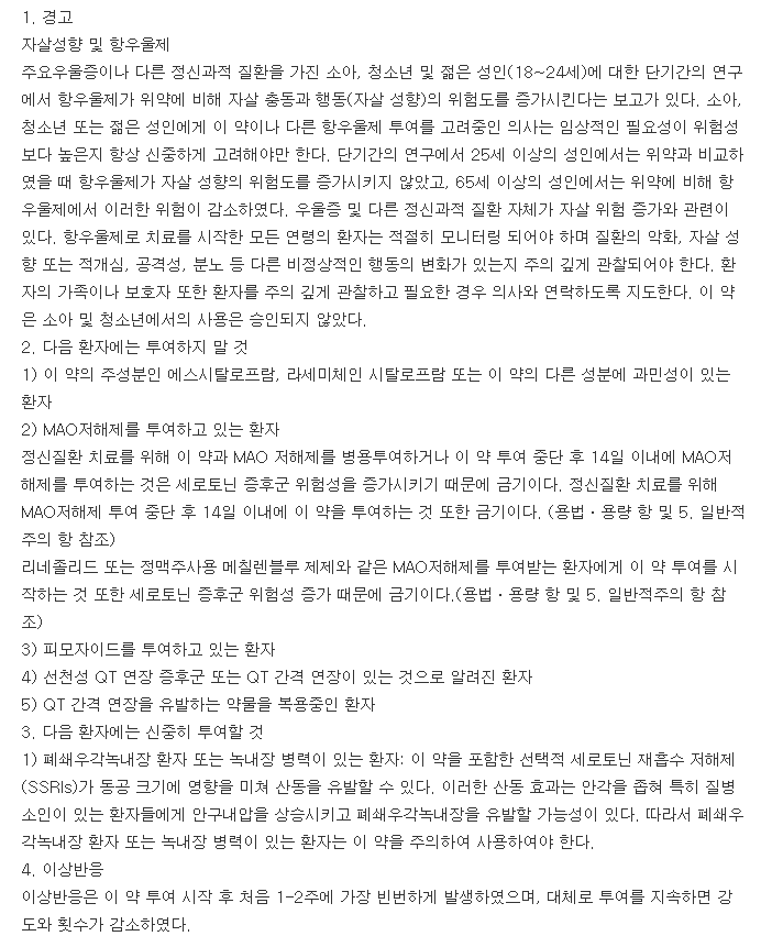 약물 복용 시에는 의약품 설명서를 면밀히 읽어 보시기 바라며, 조금이라도 이상한 반응이 나타난다면 복용을 즉시 중단하시고 빠른 시일 내에 의사나 약사와 상담을 통해 질병을 치료하길 바랍니다.