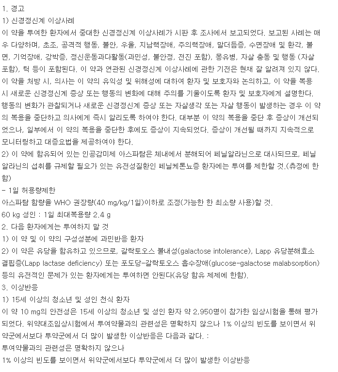 루키오정 10mg을 복용하시거나 복용을 할 예정인 분들은 이 의약품에 관한 아래의 약품 정보를 필히 읽어보시고 복용하길 추천드립니다.