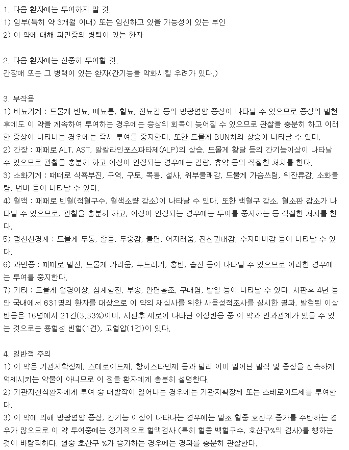 따라서 약학정보 전문기관에 등록되어 있는 아래의 약품 주의사항을 필히 자세히 정독하고 부작용이나 이상반응, 고령자나 소아, 임부나 수유부에 대한 주의를 기울여야 합니다.