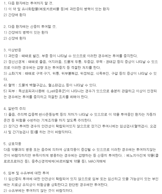 약물 복용 시에는 의약품 설명서를 자세히 읽어 보시기 바라며, 조금이라도 이상반응이 느껴진다면 복용을 즉시 중단하고 빠른 시일 내에 의사나 약사와 진료와 상담을 통해 질병을 치료하셔야 합니다.