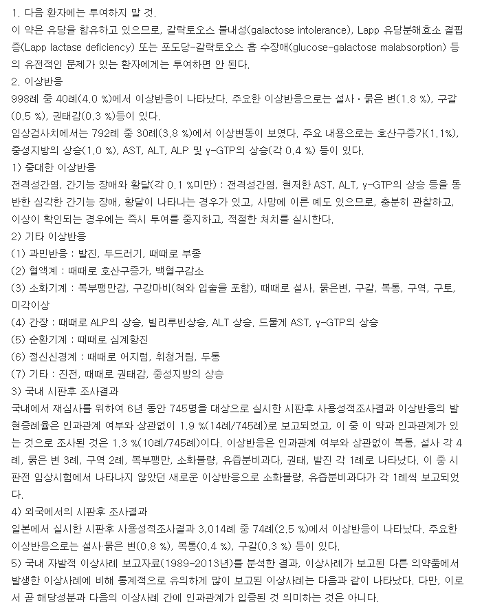따라서 약학정보원에 등록되어 있는 밑의 의약품 주의사항을 필히 세밀히 읽어보고 부작용이나 이상반응 여부, 고령자나 소아, 임부나 수유부에 관한 주의를 기울여야 합니다.