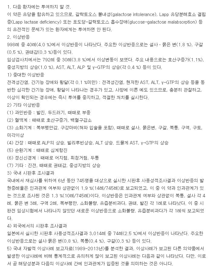 따라서 약학정보원에 등록된 아래의 약품 주의사항을 필히 자세히 읽어보고 약 부작용이나 이상반응 여부, 소아나 고령자, 임산부나 수유부에 해당하는 경우 주의를 기울이셔야 합니다.