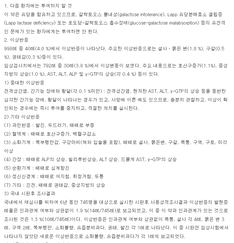 따라서 약학정보원 공식사이트에 공시되어 있는 하단의 의약품 주의사항을 반드시 자세히 읽어보시고 약품 부작용이나 이상반응, 고령자나 소아, 임신하거나 수유하는 경우에 해당하는 경우 주의를 기울여야 합니다.