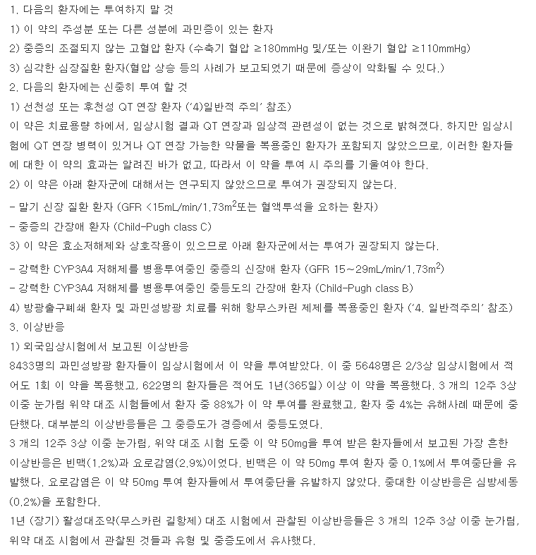 5. 미라벡서방정50mg 성분과 성분별 약효