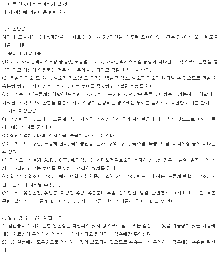 따라서 약학정보원 공식사이트에 공시된 하단의 약품 주의사항을 반드시 꼼꼼히 읽어보시고 부작용이나 이상반응, 고령자나 소아, 임신하거나 수유하는 경우에 관한 주의를 기울이셔야 합니다.