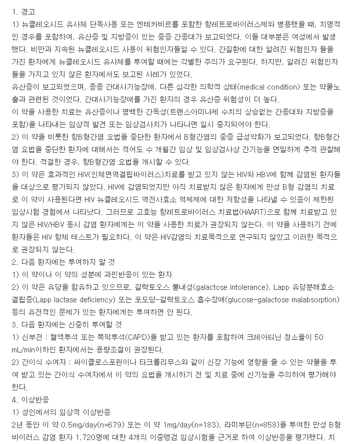 이번 포스팅은 전문의약품으로 분류되는 바라크루드정 0.5mg(Baraclude Tab. 0.5mg)의 효능 및 복용법, 주의사항에 관하여 알아보고자 합니다.