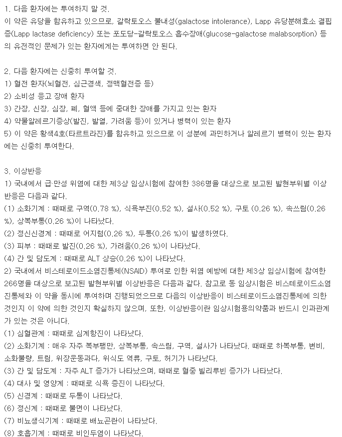 따라서, 약학정보원 공식사이트에 공시된 밑의 의약품 주의사항을 반드시 꼼꼼히 읽어보고 약품 부작용이나 이상반응, 소아나 고령자, 임부나 수유부에 대한 주의를 기울이셔야 합니다.