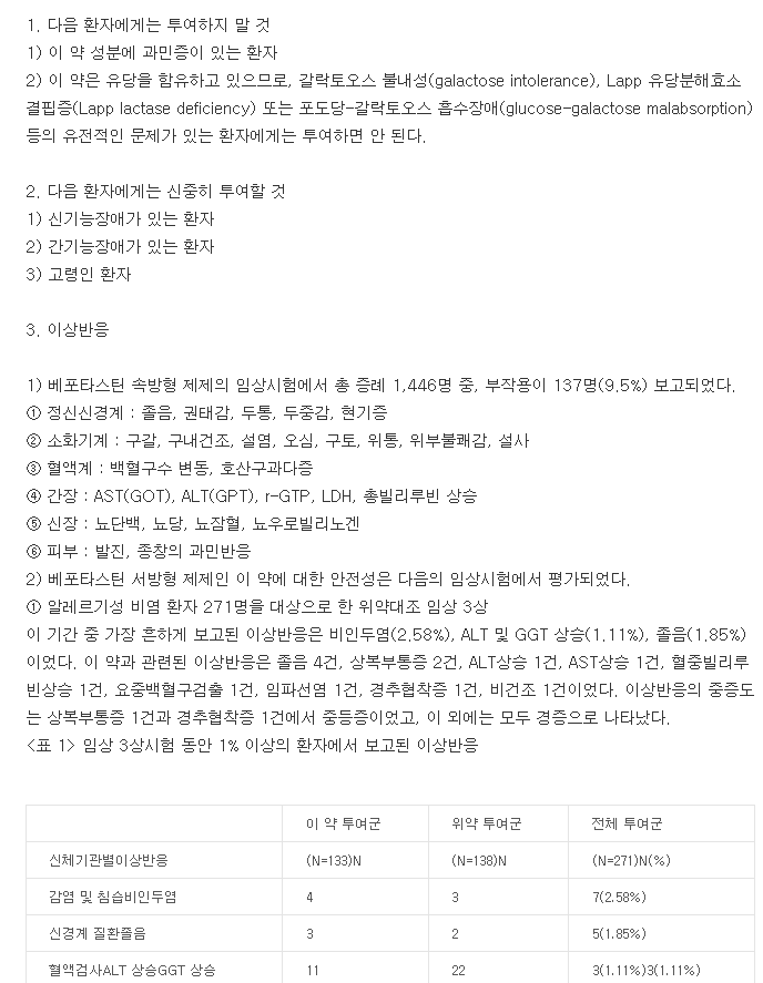베포스타서방정의 약 효능 : 다년성 알레르기성 비염, 만성 두드러기