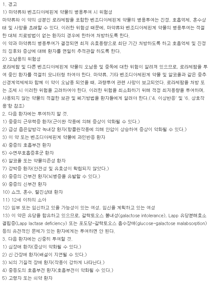 약품 성분별 약효로는 Lorazepam : 정신/행동장애 > 항불안제 > Benzodiazepine계의 효능을 가지고 있습니다.