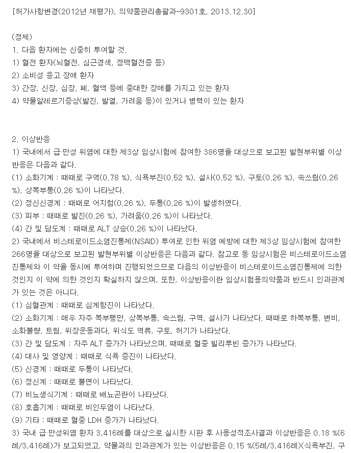따라서, 약학정보원에 공시된 밑의 의약품 주의사항을 필히 자세히 읽어보시고 부작용이나 이상반응, 고령자나 소아, 임부나 수유부에 관한 주의를 기울여야 합니다.