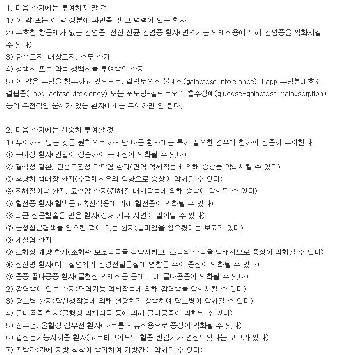 스폴론정의 약 효능 : 원발성 및 속발성 부신피질 기능부전증, 선천성 부신이상 증식, 암에 수반된 고칼슘혈증, 비화농성 갑상선염