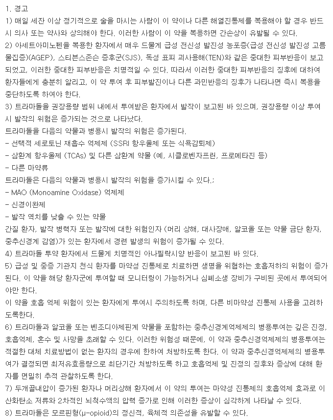 아트놀셋세미정의 효능 : 중등도-중증의 급·만성 통증