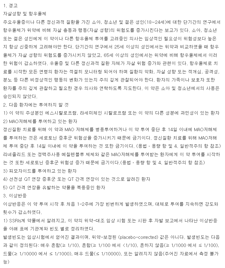 에스시탈정 10mg을 복용하거나 복용 예정인 분들은 해당 전문의약품에 관한 하단의 약품 정보를 반드시 정독하고 복용하시길 당부드립니다.