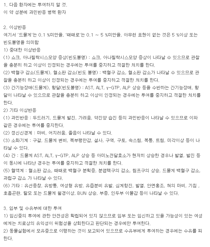 따라서 약학정보 전문기관에 등록되어 있는 밑의 약품 주의사항을 반드시 자세히 읽어보고 부작용이나 이상반응 여부, 고령자나 소아, 임신하거나 수유하는 경우에 대한 주의를 기울여야 합니다.