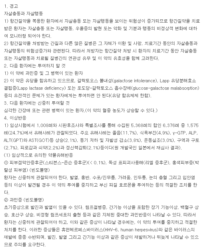 약물 복용 시 동봉된 약품 안내서를 면밀히 읽어 보시기 바라며, 조금이라도 이상반응이 나타난다면 약품 복용을 즉시 중단하고 빠른 시일 내에 의사와 진료와 상담을 통해 질병을 치료하길 바랍니다.
