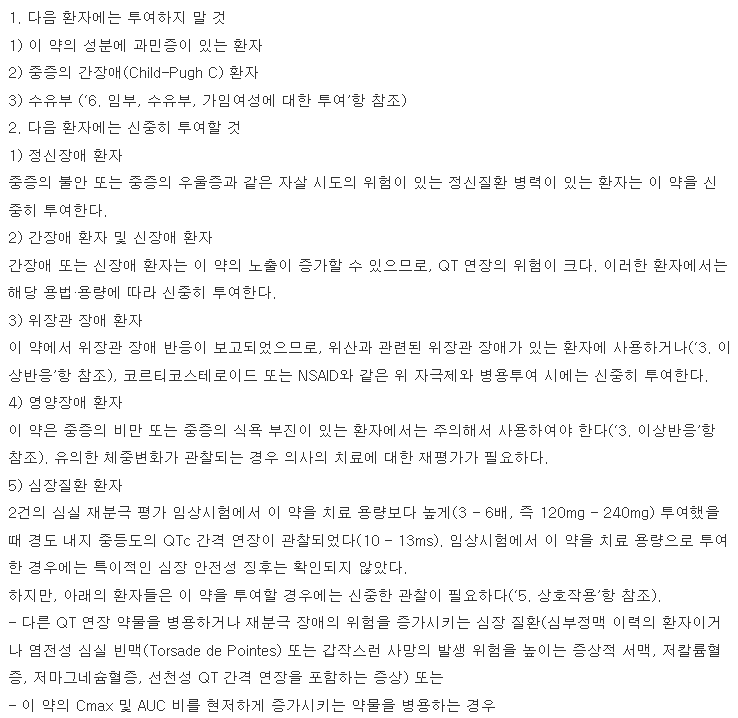 약물 복용 시에는 약품 설명서를 자세히 읽어 보길 바라며, 조금이라도 이상한 반응이 나타난다면 복용을 즉시 중단하고 빠른 시일 내에 전문의와 진료와 상담을 통해 질병을 치료하시기 바랍니다.