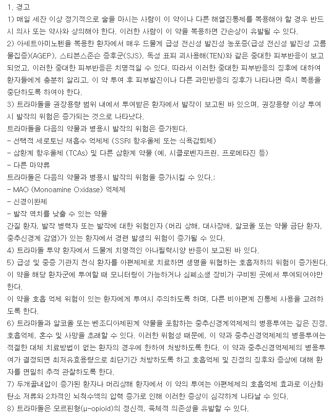 원트란세미서방정의 약 효능 : 중등도-중증의 급, 만성 통증