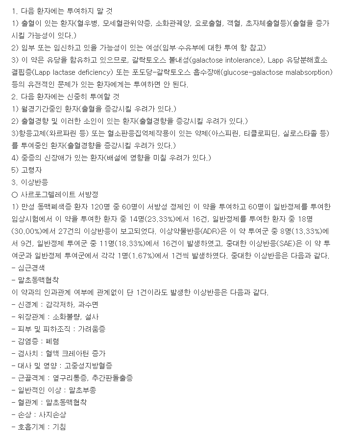 성분별 약 효능으로는 Sarpogrelate Hydrochloride : 혈액 및 조혈기관 질환 > 항응고제 > 항혈소판제 > 항Serotonin제의 효능을 지니고 있습니다.