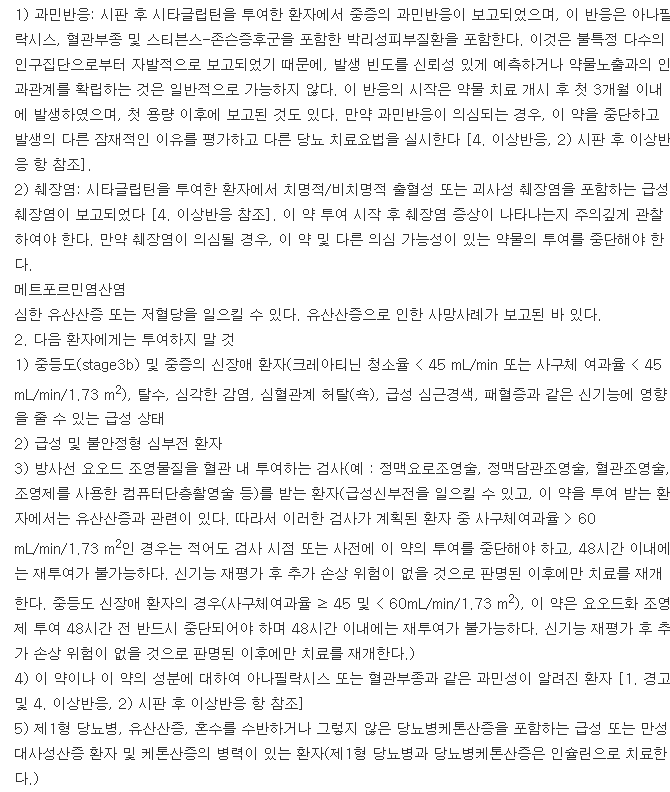 1일 최대권장용량인 시타글립틴 100 mg과 메트포르민 2000 mg을 넘지 않는 범위에서 각 환자의 현재 치료요법, 유효성, 내약성을 고려하여 결정한다.
