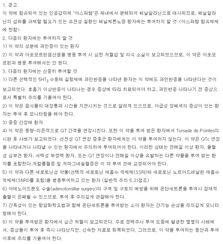 8. 조프란자이디스정4mg 용법