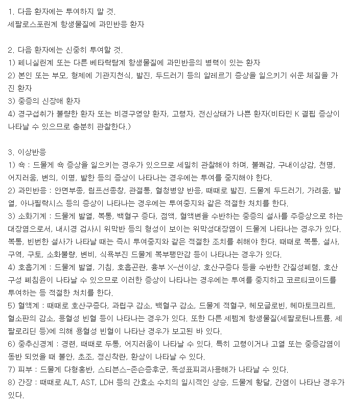 진세프정을 복용 중이거나 복용이 예정인 분들은 이 약품에 대한 하단의 안내를 반드시 읽어보고 복용하길 추천드립니다.