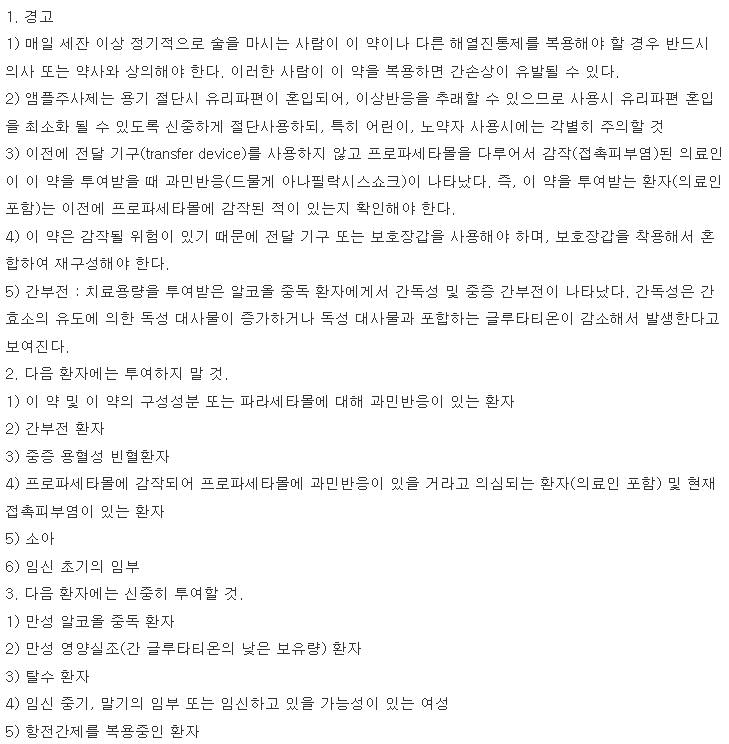 파세타주의 약 효능 : 외과 수술 후 통증, 발열의 단기간 치료