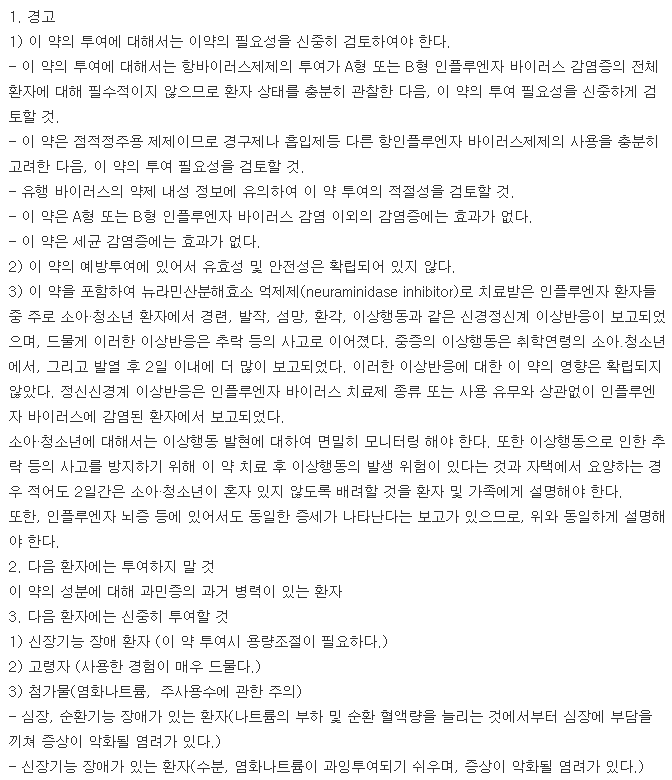 페라원스프리믹스주의 효능 : A형 또는 B형 인플루엔자 바이러스 감염증의 치료