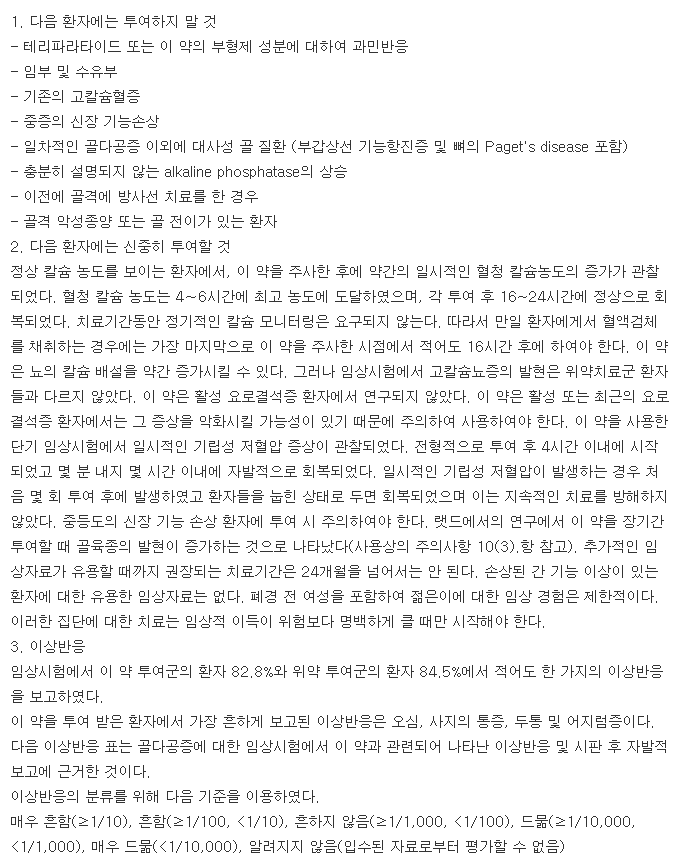 오늘은 전문의약품인 포스테오주(Forsteo Inj.)의 효능 및 복용법, 주의사항에 대하여 알아보겠습니다.