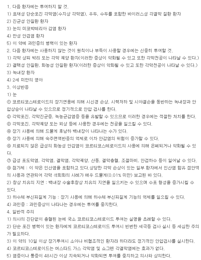성분별 효능으로는 Fluorometholone : 눈ㆍ귀ㆍ치과ㆍ구강용 약물 > 안과용 항염증제 > 스테로이드제의 약 효능을 지니고 있습니다.