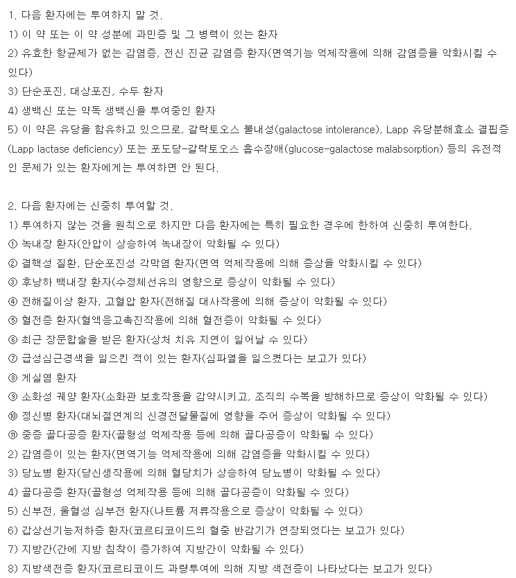 프레나정은 면역억제 및 항염작용을 나타내는 호르몬제로 내분비장애 또는 각종 염증질환에 사용하는 약입니다.