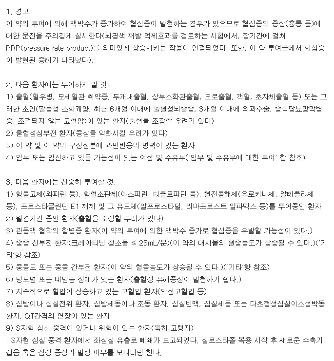 약물 복용 시에는 약품 안내서를 면밀히 읽어 보길 바라며, 조금이라도 이상한 반응이 나타난다면 약품 복용을 즉시 중단하시고 반드시 전문의와 진료와 상담을 통해 질병을 치료하길 바랍니다.